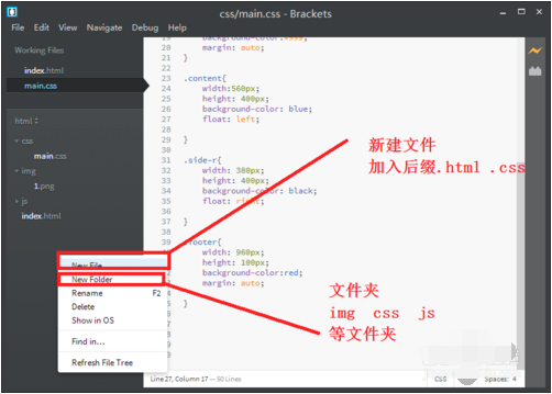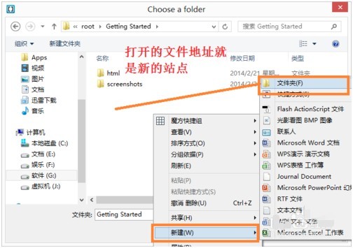 左鍵點擊文件夾的名字,就可以打開Open Folder,我們就可選擇或者新建一個文件夾作為網(wǎng)站站點。