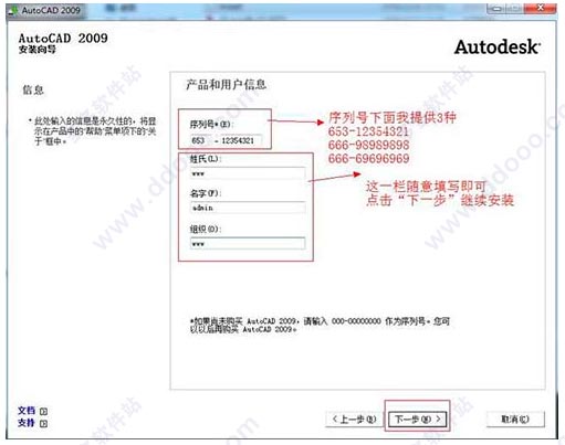 6、把激活碼復(fù)制到CAD2009的激活碼欄中點擊下一步,就可以激活了。
