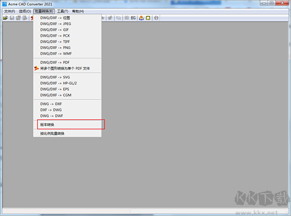 1、我們點擊功能欄上的“批量轉(zhuǎn)換”按鈕,在呼出的選項中選擇“版本轉(zhuǎn)換”;