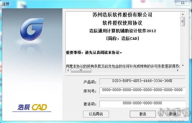 4、打開(kāi)浩辰CAD2012,這時(shí)軟件還會(huì)出現(xiàn)激活窗口,不用管它,點(diǎn)以后再說(shuō);