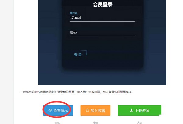 17素材免積分下前端模板器是一款可以直接通過“查看演示”的方式把模版內(nèi)容下載到本地,讓人省心省事的一款下載工具!