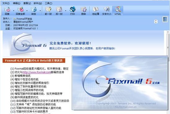 ?Foxmail是中國著名的軟件產(chǎn)品之一,名列“十大國產(chǎn)軟件”,被 太平洋電腦網(wǎng)評為五星級軟件,F(xiàn)oxmail通過和U盤的授權(quán)捆綁形成了安全郵、隨身郵等一系列產(chǎn)品,該軟件的主要功能是為用戶提供基于Internet標(biāo)準(zhǔn)的電子郵件收發(fā)功能。Foxmail 6.0致力于提供更便捷、更舒適的Foxmail產(chǎn)品使用體驗(yàn)。在6.0版本中啟動(dòng)速度得到的了優(yōu)化, 可以幫助你更節(jié)省時(shí)間!
