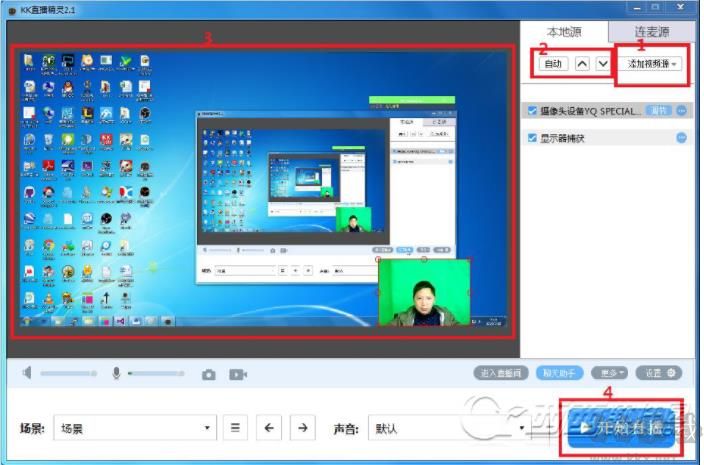 圖標啟動程序進入主界面后,最簡單開始直播過程按照如圖所示開播流程四步曲即可實現(xiàn)開播:
