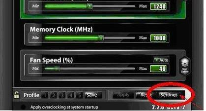 使用超頻后,跑3DMark軟件甚至是Furmark拷機(jī)確認(rèn)穩(wěn)定的顯卡頻率后,可點(diǎn)Profile邊上的數(shù)字,然后點(diǎn)“Save”保存方案。之后只要直接點(diǎn)擊該數(shù)字,或者使用快捷鍵就可以直接啟動(dòng)設(shè)置好的頻率,一鍵超頻。最多可保存5個(gè)配置文件。點(diǎn)擊小鎖按鈕,可固定當(dāng)前頻率不變,且不能再使用save按鈕;