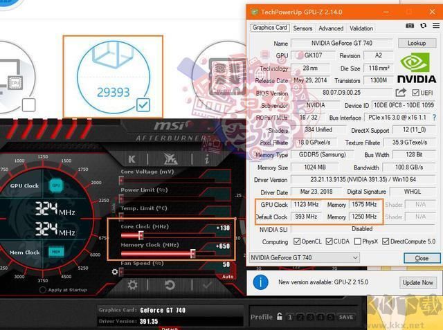 最后附上我這張懷舊GT740 1G最終超頻結(jié)果和魯大師跑分前后對(duì)比。29393分,對(duì)比第一次的25996多了3397分,在GT740這個(gè)擋位,表現(xiàn)顯然是相當(dāng)不錯(cuò)了。