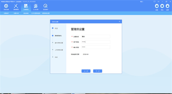 8、錄入管理員名字或開票人名字,并設(shè)置密碼,點(diǎn)擊下一步,如kkx下面分享的圖片: