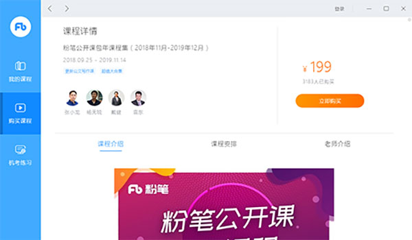 粉筆公考電腦版是一款由粉筆公考推出的一款適合于學生們使用的考試課程學習工具,粉筆公考APP可以為廣大學生評語們提供了多種學習和考試課程,包括公開課、工筆考試、事業(yè)單位、公考面試、教師招聘考試,研究生考試等豐富的考試學習課程,除了可以用它來觀看課程直播,還可以幫助大家進行實時互動聊天,用交流促進學習。粉筆公考電腦版支持課堂回放,讓你不錯過任何一堂課。粉筆app電腦版是上課做題以及??既愣ǖ囊徽臼椒哲浖?,對這款粉筆公考APP感興趣的朋友不要錯過了哦。