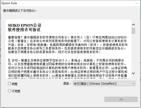 4、軟件許可協(xié)議點擊同意,如果上一步忘記選擇語言在這里也同樣可以選擇,點擊OK即可。