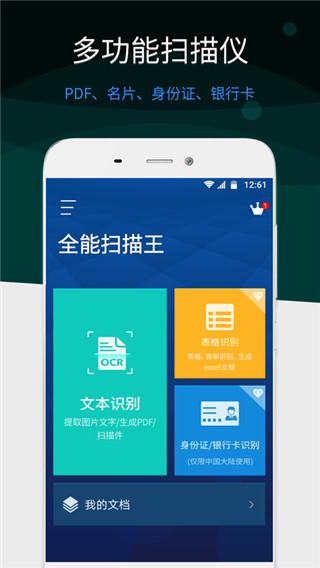 全能掃描王APP是一款非常強(qiáng)大的文字圖片掃描軟件,這是一款集文件掃描、圖片文字提取識別、PDF 內(nèi)容編輯、PDF 分割合并、PDF 轉(zhuǎn) Word、電子簽名等功能于一體的智能掃描軟件,通過手機(jī)、平板電腦、電腦等多設(shè)備同步查看。全能掃描王APP可以幫助用戶輕松的將圖片或者是照片中的文字直接識別出來。用戶可以直接復(fù)制或者是保存下來,而且還有著強(qiáng)大的翻譯功能,不僅可以快速將用戶提供的照片中的文字信息保存下來還可以自動翻譯成用戶選定的文字。想要快速獲取圖片中的文字內(nèi)容的朋友快通過下面地址來獲取這款全能掃描王破解版吧!