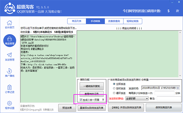 QQ群分類管理,淘客群和買家群可以分開管理,自定義單子發(fā)送到哪個分類群,讓自己的單子,既可以發(fā)送到淘客群,也可以發(fā)送到買家群,不帶上淘客,傭金等字眼。還可以自定義發(fā)送模版。