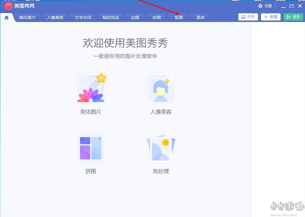 1、打開美圖秀秀,主界面上點擊摳圖選項