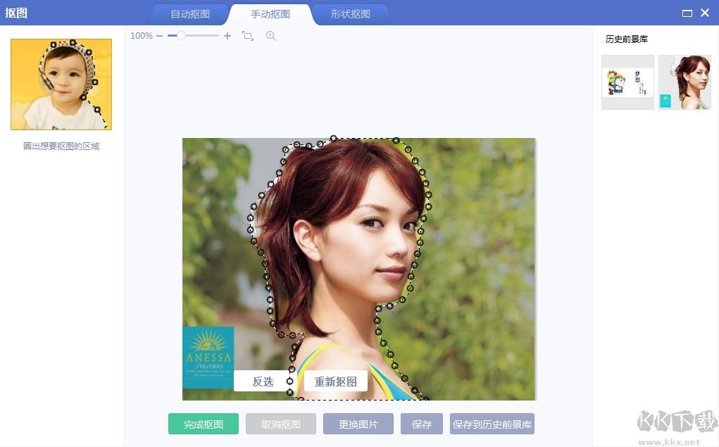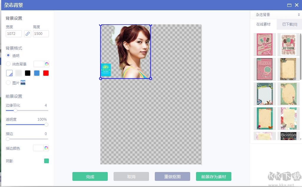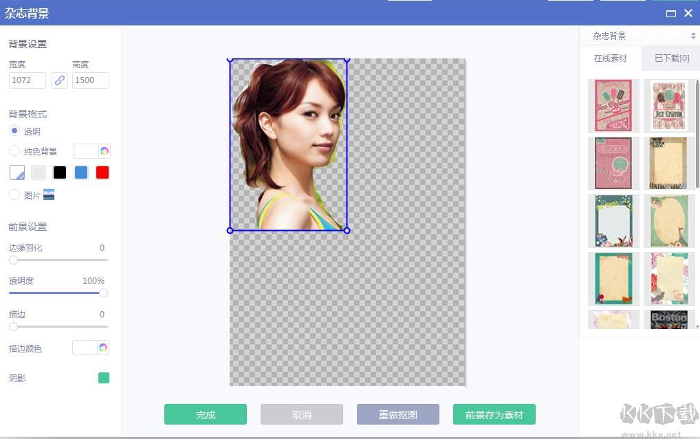 6、手動摳圖的效果,當然,大家還可以在左側設置背景色等,默認是透明的。