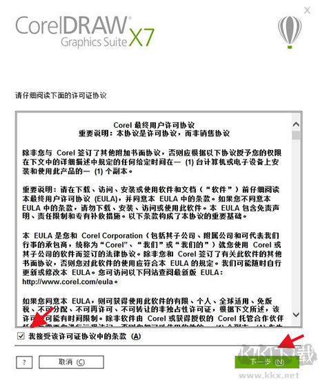 1、下載本站提供的CorelDRAW X7安裝包,解壓,然后雙擊“CorelDraw_64bit_Trial_wm.exe”選擇“我接受許可協(xié)議”然后點(diǎn)擊下一步