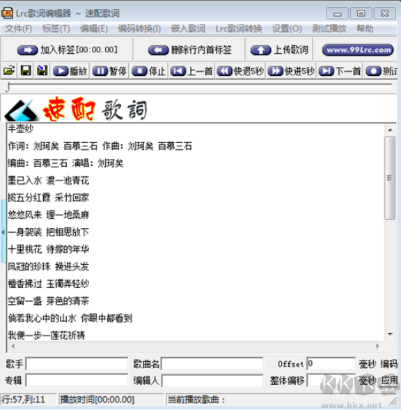 Lrc歌詞編輯器是一款速配歌詞獨(dú)立自主開發(fā)的Lrc歌詞編輯器。該軟件吸收了各Lrc歌詞編輯器的優(yōu)點(diǎn),同時(shí)開發(fā)更多新功能,讓新用戶更容易上手;Lrc歌詞編輯器不但制作Lrc歌詞強(qiáng)大,而且轉(zhuǎn)換歌詞也強(qiáng)大,支持LRC、ID3(LRC)KSC、SNC、SSA、QLY、SMI、TXT、SRT等多種歌詞轉(zhuǎn)換,以及批量歌詞轉(zhuǎn)換,可稱為為目前最強(qiáng)的Lrc歌詞編輯器。