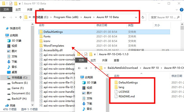 5、先將Axure-RP-10-CHS-1.1.0 漢化補丁復制到軟件安裝目錄下;