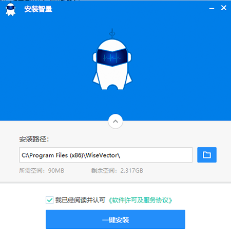 1、將kkx分享的“智量終端安全官方版”下載后解壓到任意文件夾,雙擊“WiseVector_Setup.exe”開(kāi)始安裝;