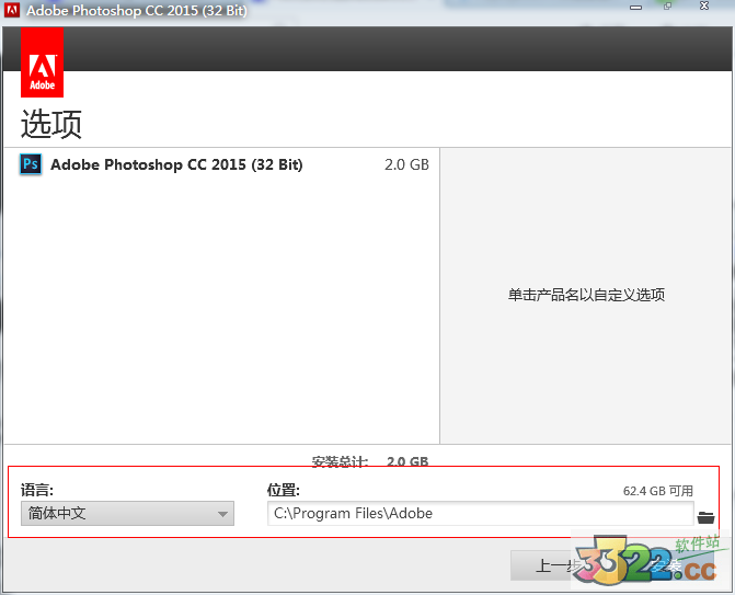 4.這個版本的photoshop支持中文所以安裝的時候要注意不要裝錯了Adobe Photoshop CC 2015,如下圖所示: