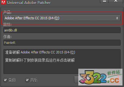 5.安裝完成后,我們先不要啟動,將破解補丁放在安裝目錄,打開破解軟件,因為2014補丁和2015是通用的,所以打開cc的2014破解補丁。