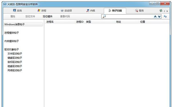 1、首先打開(kāi)上方選項(xiàng)欄的鉤子掃描,然后選擇左側(cè)的列表,對(duì)想要搜索的內(nèi)容進(jìn)行掃描,一些已經(jīng)開(kāi)啟的軟件,可以在進(jìn)程中查找,想要查找鍵盤(pán)鼠標(biāo)相關(guān)的則可以查找相應(yīng)內(nèi)容。