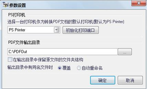 2、打開(kāi)參數(shù)設(shè)置,可以對(duì)PDF虛擬打印機(jī)、PDF輸出目錄等參數(shù)進(jìn)行配置。