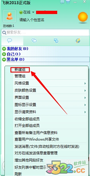 5.在好友列表,點(diǎn)擊右鍵,在下拉菜單中選擇“新建組”,可以對好友進(jìn)行分組