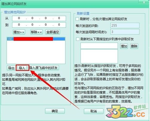 3.可以點(diǎn)擊“導(dǎo)入”,快速導(dǎo)入大量網(wǎng)段信息
