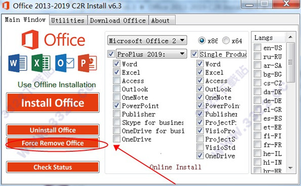 4、點(diǎn)擊紅圈中的force remove office進(jìn)行二次卸載,重啟電腦,如kkx分享的圖片: