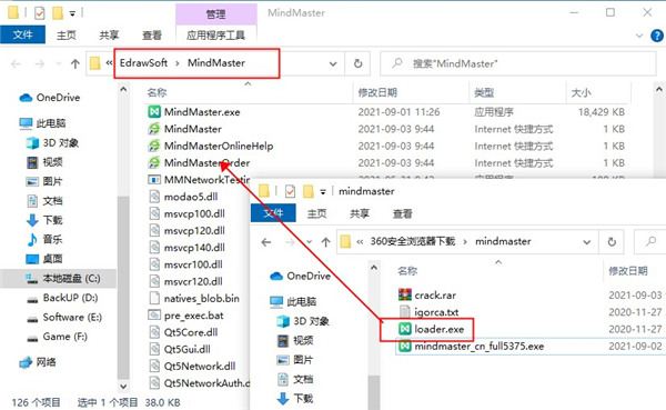 1、下載解壓,得到MindMaster9安裝包和crack補丁;