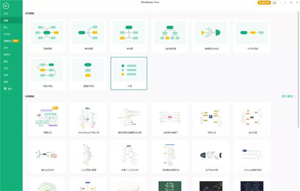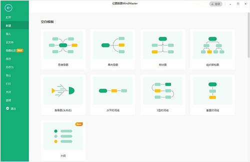 打開MindMasterV9.0客戶端,你將會看到全新簡約的新建頁,不僅上線了新的大綱視圖,還對其他布局做了美化。