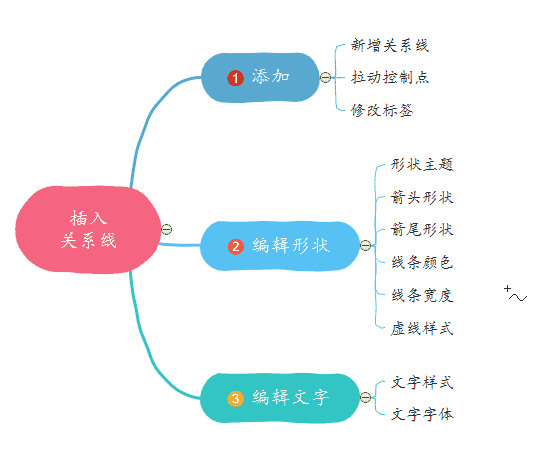 1、選中起始主題,再點擊終止主題,即可生成“關(guān)系線”;