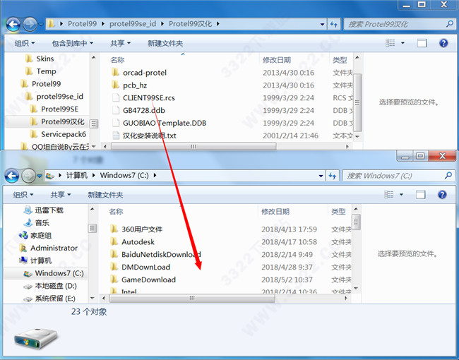 1、將解壓包中“Protel99漢化”文件夾中的“CLIENT99SE.rcs”文件復(fù)制到“C:\Windows”目錄下。