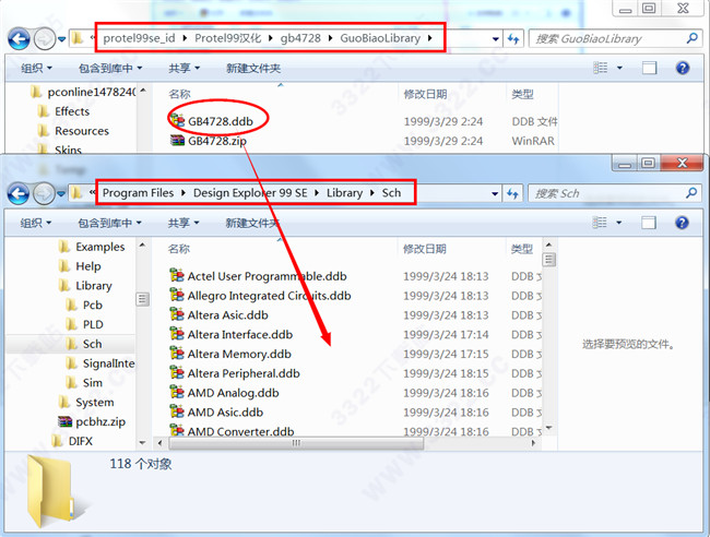 3、將解壓包中的“GB4728.ddb”文件復(fù)制到“C:\Program Files\Design Explorer 99 SE\Library\Sch”目錄下,將文件的只讀屬性去掉。