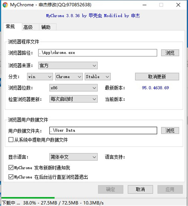 MyChrome是一款由甲殼蟲制作,申杰修改的谷歌瀏覽器便攜化工具,可以在任意位置運行,啟動瀏覽器后立即退出,不會占用系統(tǒng)資源。用戶通過MyChrome可以將安裝與系統(tǒng)盤內的谷歌瀏覽器制作成便攜式版本,還能支持瀏覽器的更新升級操作,你可以使用MyChrome清收改造谷歌瀏覽器,幫助你實現(xiàn)自定義瀏覽器的程序、數(shù)據(jù)和緩存文件的所在位置,而且能夠在任意存儲設備中運行瀏覽器,對這款MyChome感興趣的朋友快來通過kkx分享的地址獲取吧!