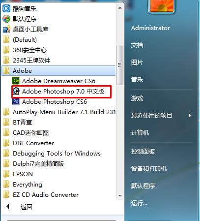 4、安裝完成后,桌面沒(méi)有快捷方式,可以在開(kāi)始菜單adobe軟件中打開(kāi)photoshop 7.0,如下圖