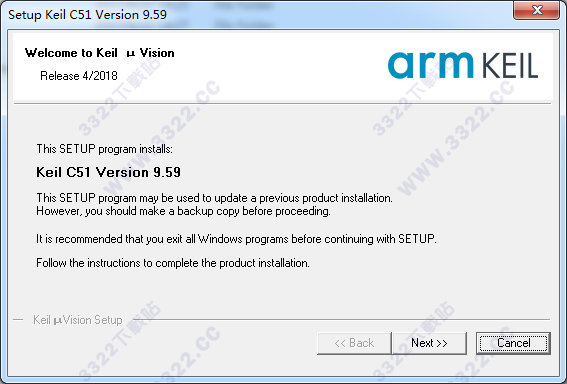 1.下載好數(shù)據(jù)包后,直接解壓用鼠標(biāo)雙擊“keil_c51v959(180509版).exe”打開進(jìn)入安裝向?qū)Вc(diǎn)擊“next”進(jìn)入下一步,如kkx分享的安裝截圖: