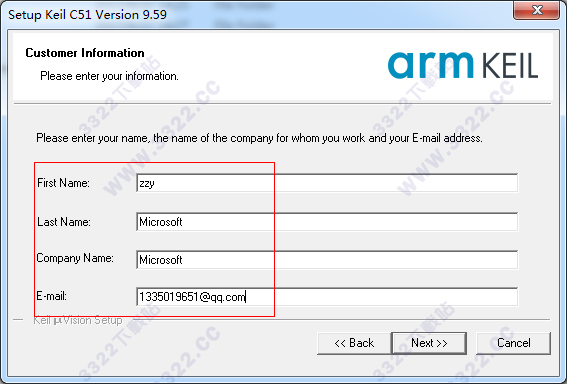 4.輸入你的安裝信息,隨意輸入即可,如kkx分享的安裝截圖: