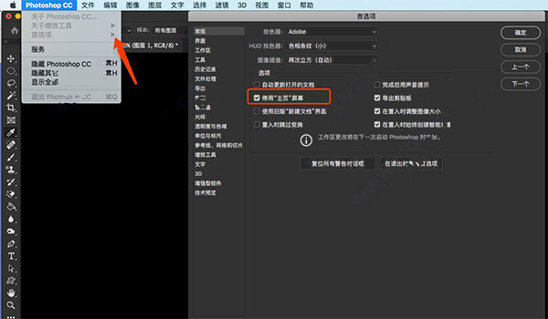 4、至此,ps 2019 mac破解版成功激活,用戶(hù)可以點(diǎn)擊菜單欄上方的軟件標(biāo)識(shí),選擇“關(guān)于 photoshop cc”查看軟件的相關(guān)版本信息