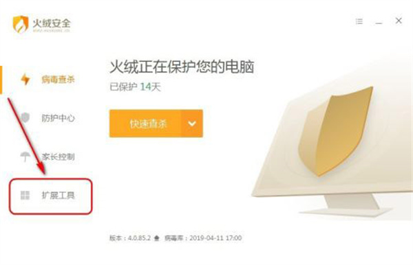 3、第三步,進(jìn)入火絨安全擴(kuò)展工具一欄,如下圖kkx分享的圖片所示: