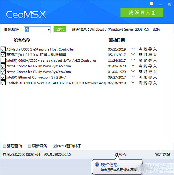CeoMSX新增Intel Usb3.1驅(qū)動