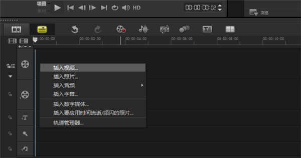 2.1、在視頻軌上單擊鼠標(biāo)右鍵,插入照片就選擇“插入照片”,視頻就選擇“插入視頻”;