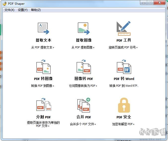 PDF Shaper中文版是一款免費且非常好用的PDF工具箱,它非常小巧,無需安裝,包含了PDF提取文本、PDF提取圖像、PDF轉換圖像,Word,分割PDf,合并PDF以及PDF加密和解密功能!有喜歡的就趕緊下載使用吧!