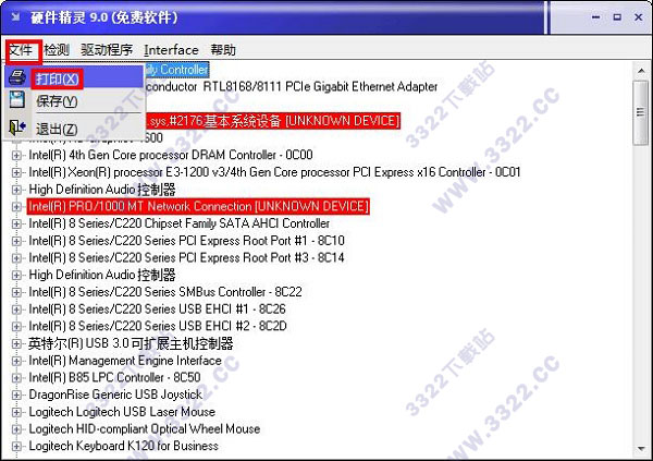 2、點(diǎn)擊“文件”-“打印”,可打印出檢測出來的所有驅(qū)動(dòng)信息