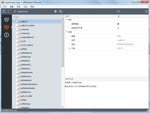 vmprotect給予二種模式的操作界面:簡(jiǎn)易模式和專家模式。簡(jiǎn)易模式幫助大家僅需點(diǎn)一下兩下電腦鼠標(biāo)便可以輕松選擇保護(hù)功能、調(diào)節(jié)選擇項(xiàng)、并得到受保護(hù)文件。權(quán)威專家模式供高級(jí)用戶應(yīng)用,該模式表明匯編代碼、容許載入腳本制作、關(guān)聯(lián)DLL等。除此之外,在“選擇項(xiàng)”標(biāo)簽卡中給予更多設(shè)置。