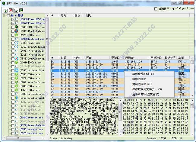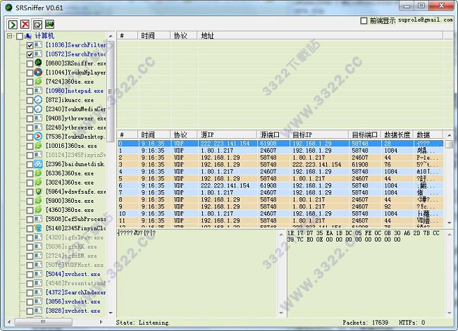 2、支持監(jiān)聽(tīng)指定進(jìn)程,使用2種顏色的數(shù)據(jù)包列表讓你更加直觀了解網(wǎng)絡(luò)情況