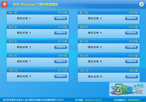 考無憂2015職稱計算機考試軟件采用微軟。net+flash技術(shù)平臺開發(fā),全面兼容windows操作系統(tǒng),在XP,VISTA,WIN7 32位及64位下都有優(yōu)秀的兼容性,軟件通過了國內(nèi)外主流殺毒軟件測試,不對操作系統(tǒng)造成任何負(fù)擔(dān)。考無憂全國職稱計算機模擬考試系統(tǒng)