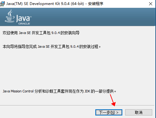 1、首先將軟件資源包【Java SE Development kit 9】下載下來,得到安裝程序文件,運行在安裝向導界面點擊“下一步”開始安裝;