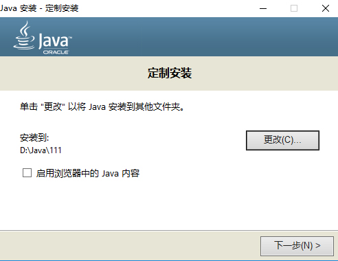 2、點擊“更改”可以更改Java的安裝路徑,設置好后點擊“下一步”