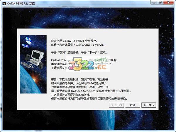 三、解壓完成,進(jìn)入解壓出來(lái)的文件夾“CATIA.P3.V5R21”,并點(diǎn)擊“Setup.exe”,提示用戶(hù)正在安裝“Catiav5r21”直接跳過(guò)內(nèi)容瀏覽并點(diǎn)擊下一步