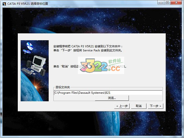 四、選擇Catiav5r21的安裝路徑,默認(rèn)路徑為C:\ProgramFiles\DassaultSystemes\B21