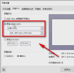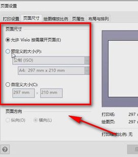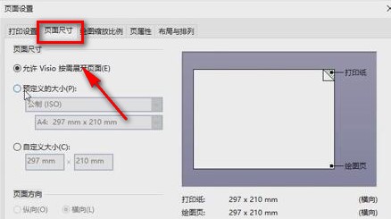 2、在頁(yè)面設(shè)置窗口中,我們?cè)诖翱陧敳空业?ldquo;頁(yè)面尺寸”選項(xiàng),點(diǎn)擊該選項(xiàng),其下方會(huì)出現(xiàn)許多相應(yīng)的操作選擇,如kkx分享的圖片: